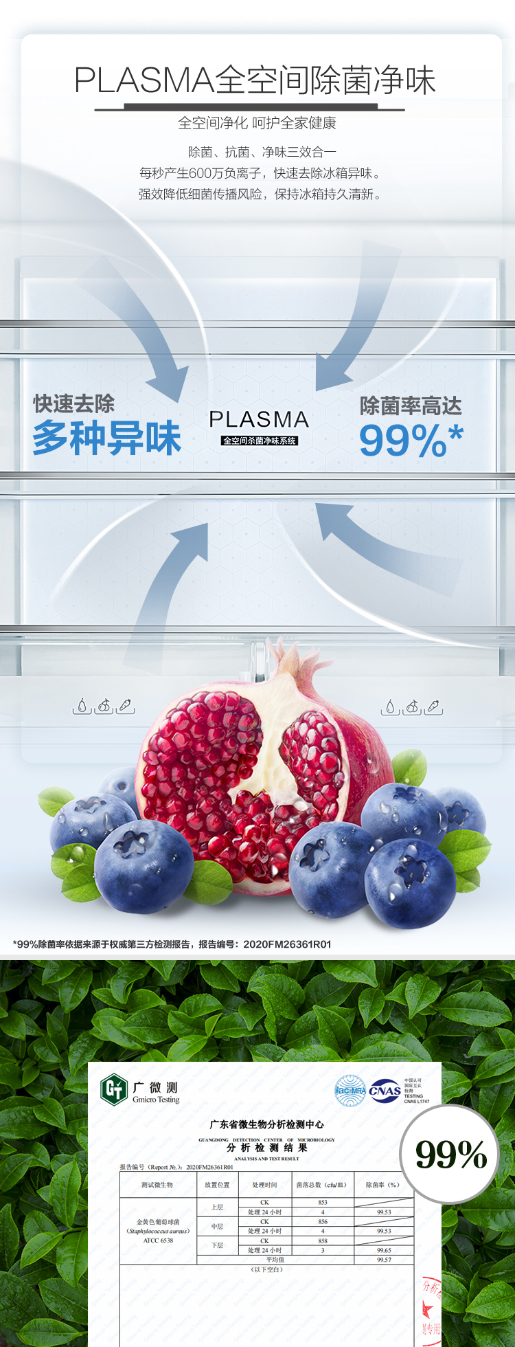 搭載-5℃嫩凍凝鮮科技,鮮嫩兩星期,輕松一刀切。Plasma等離子除菌凈味,除菌保鮮,長久新鮮。4檔保鮮模式,多重角色時刻新鮮。