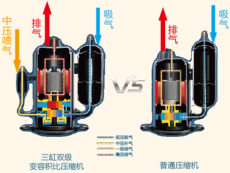 三缸雙級變?nèi)輭嚎s機技術;低溫制熱強勁 高溫制冷舒適;22分貝盡享新“靜”界;高能效 節(jié)能省電;耐寒元器件,-40℃及以下斷電放置能正常啟動;省心安裝