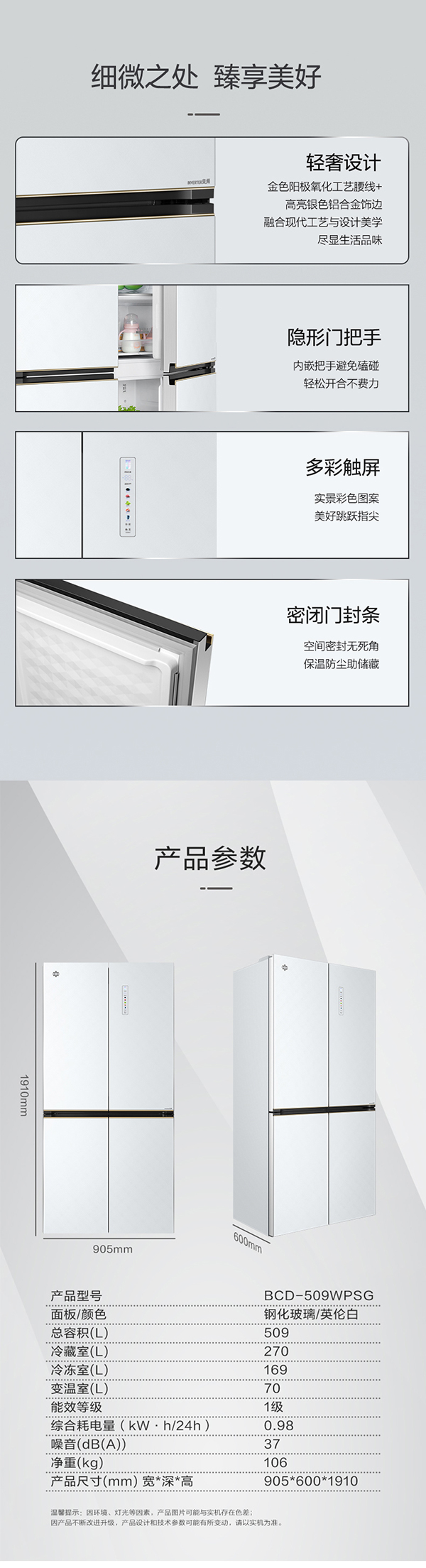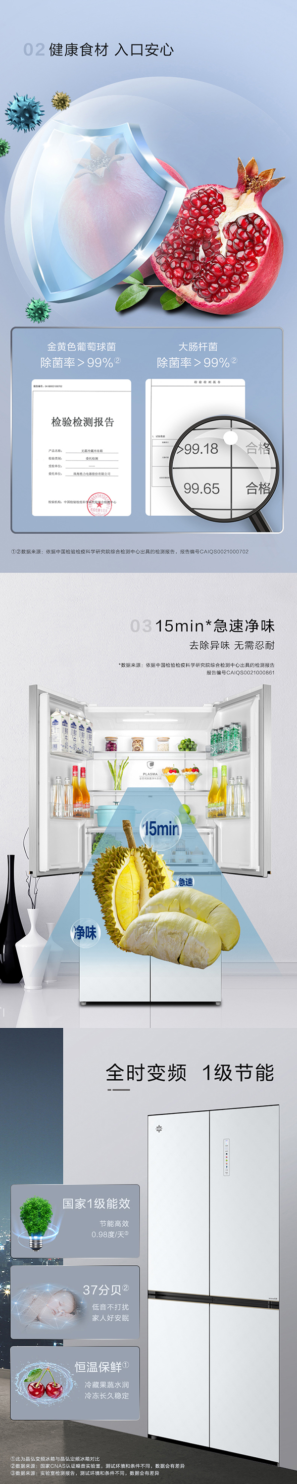 -33攝氏度深凍儲鮮;PLASMA全空間除菌凈味;平齊不凸出;雙通道循環(huán)散熱