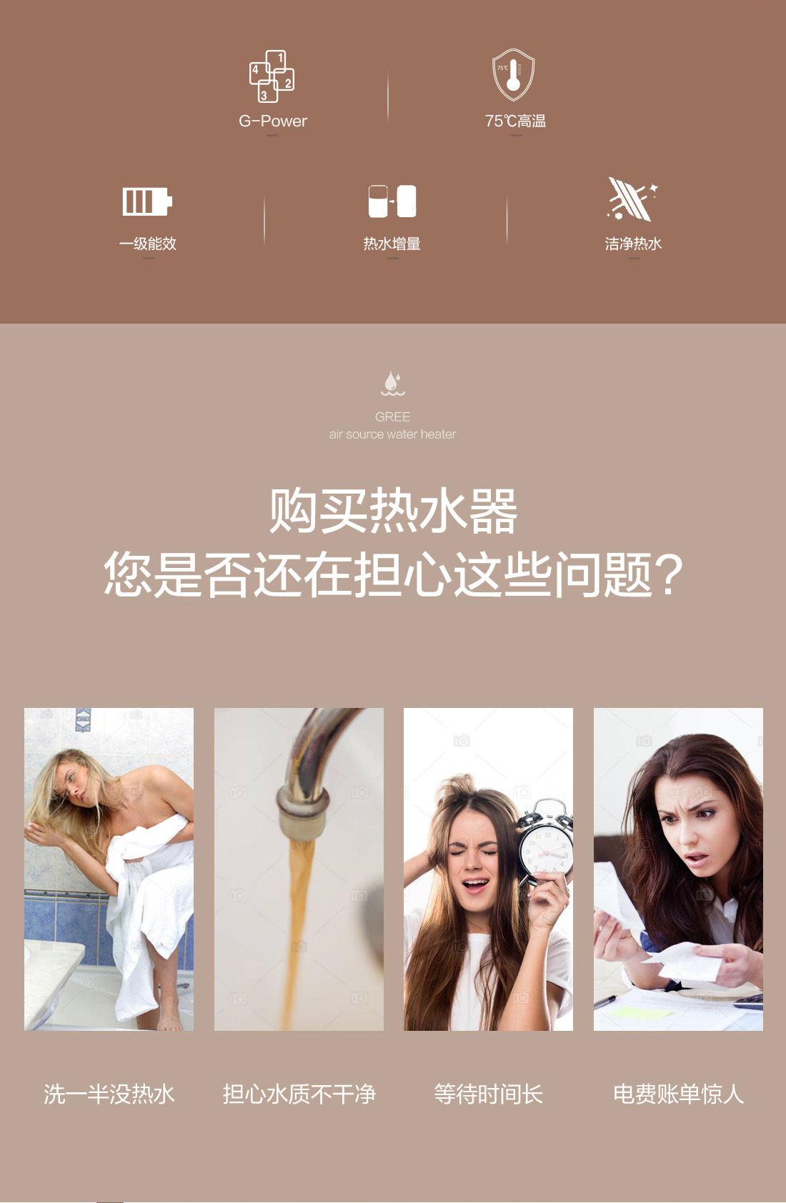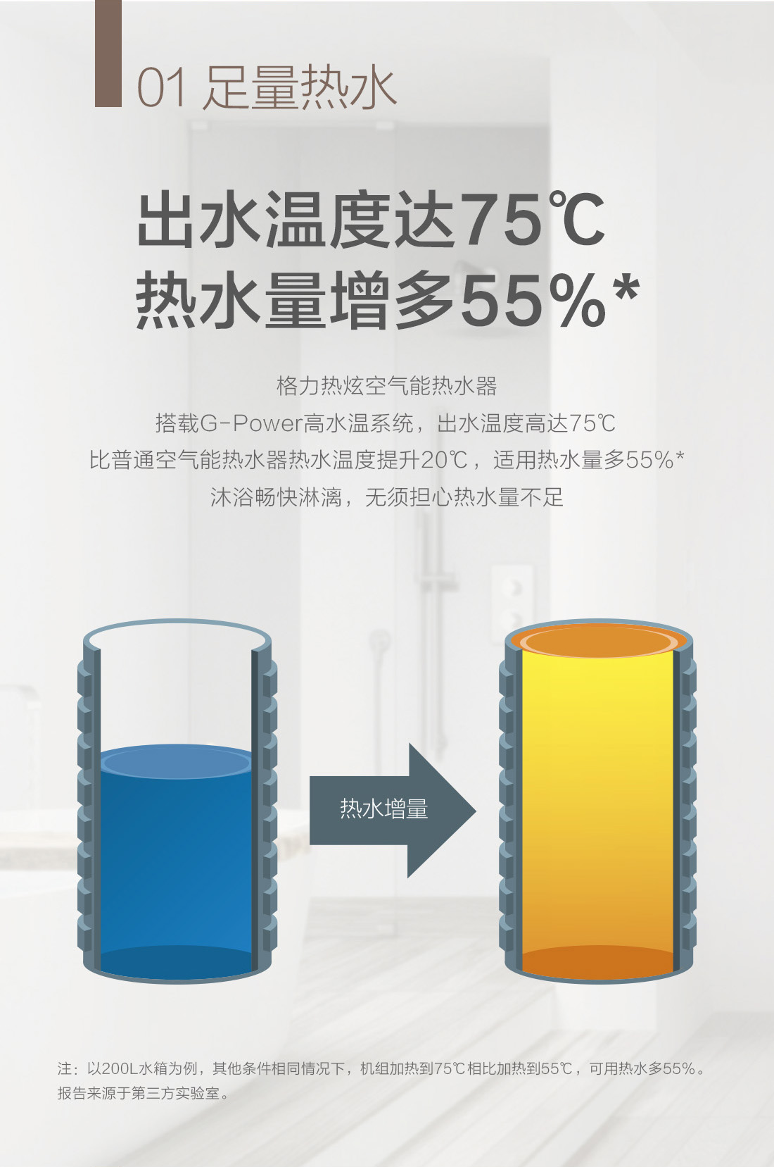 高溫大水量,沐浴暢快享,搭載G-power高水溫系統(tǒng),成就水溫更高,水量更大的空氣能熱水器,更達(dá)1級(jí)能效,省電高達(dá)75%,全家人暢快享受的沐浴選擇。
